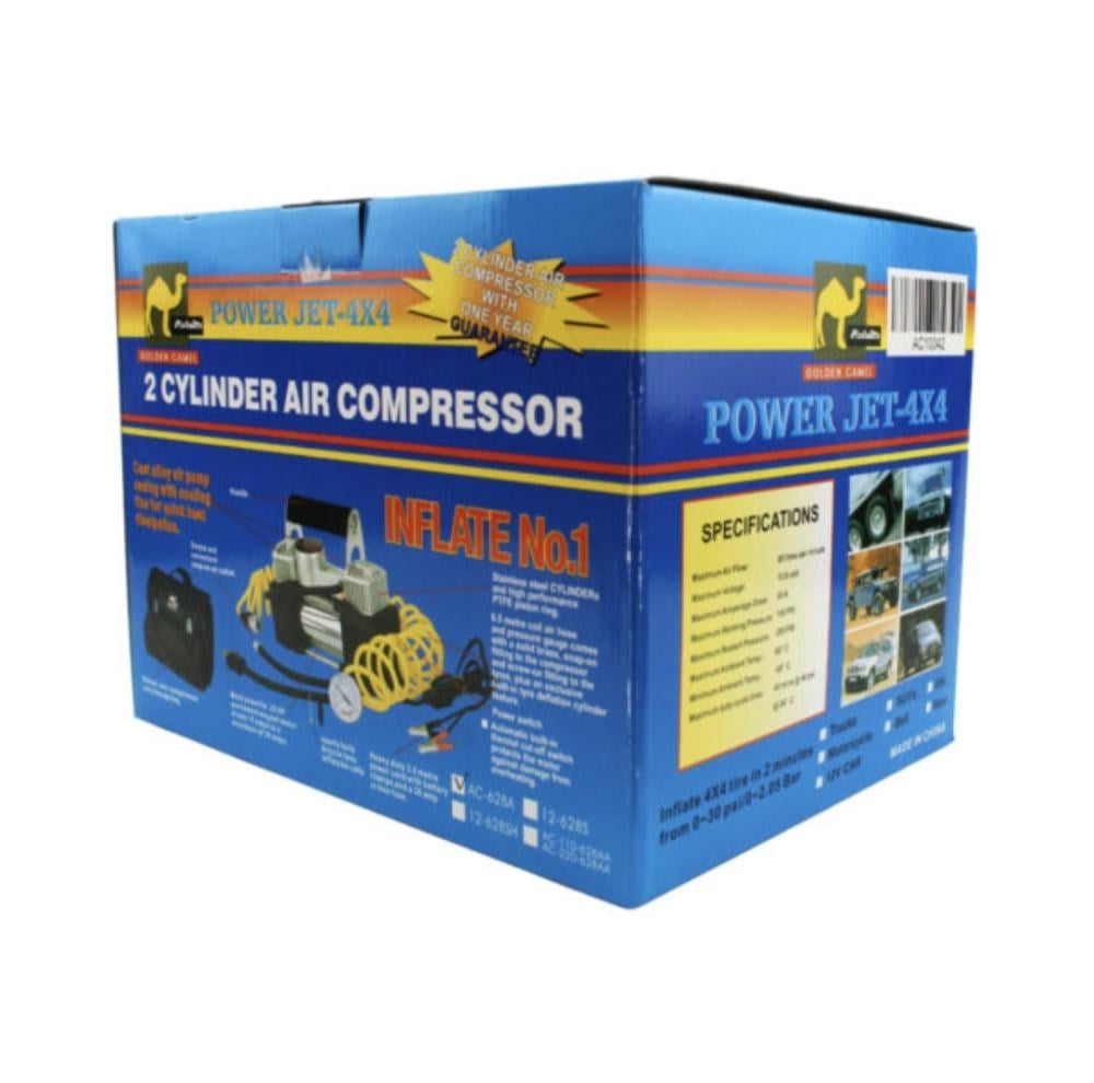 ماطور هواء أبو جمل 2 سلندر يقدم لك أداء قوي وسرعة عالية في النفخ بفضل المحرك المزدوج. مناسب للاستخدام المتوسط إلى الثقيل، ويقدر ينفخ كفرات سيارات الدفع الرباعي والجيوب بسهولة. يشتغل مباشرة على البطارية ويجي معه شنطة خاصة للتخزين والنقل.